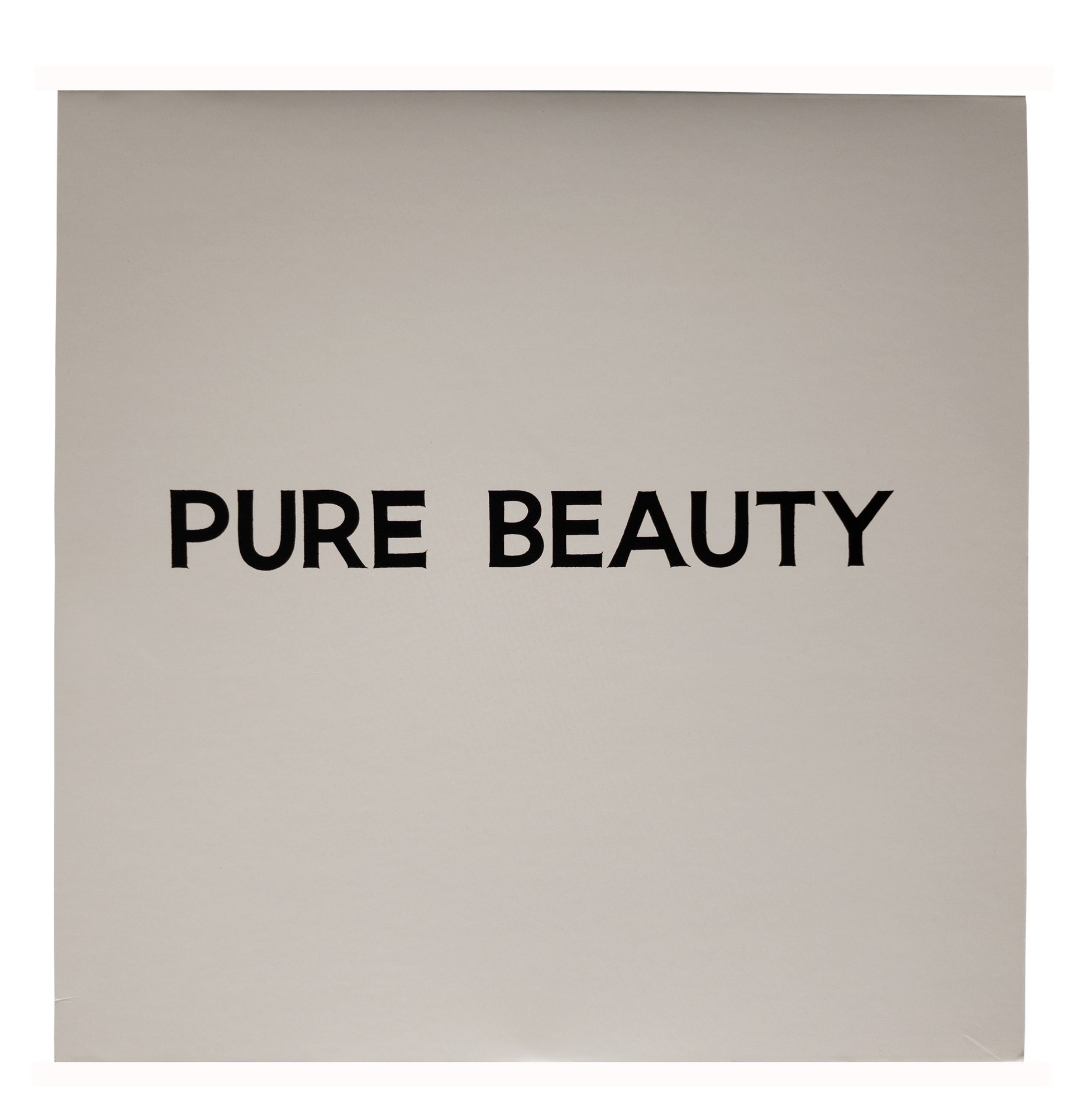 This hat reproduces Pure Beauty (1966-68), one of Baldessari's more elusive and beguiling text paintings. The deadpan phrase, in black letters on a beige background, clearly doesn't offer "pure beauty" as an image—like Magritte's "ceci n'est pas une pipe," it is wryly self-negating. Instead of showing "pure beauty," it asks the viewer to imagine it as a concept. Beauty, in this work, is in the mind of the beholder. Wear this hat for a chance to be beheld like never before.