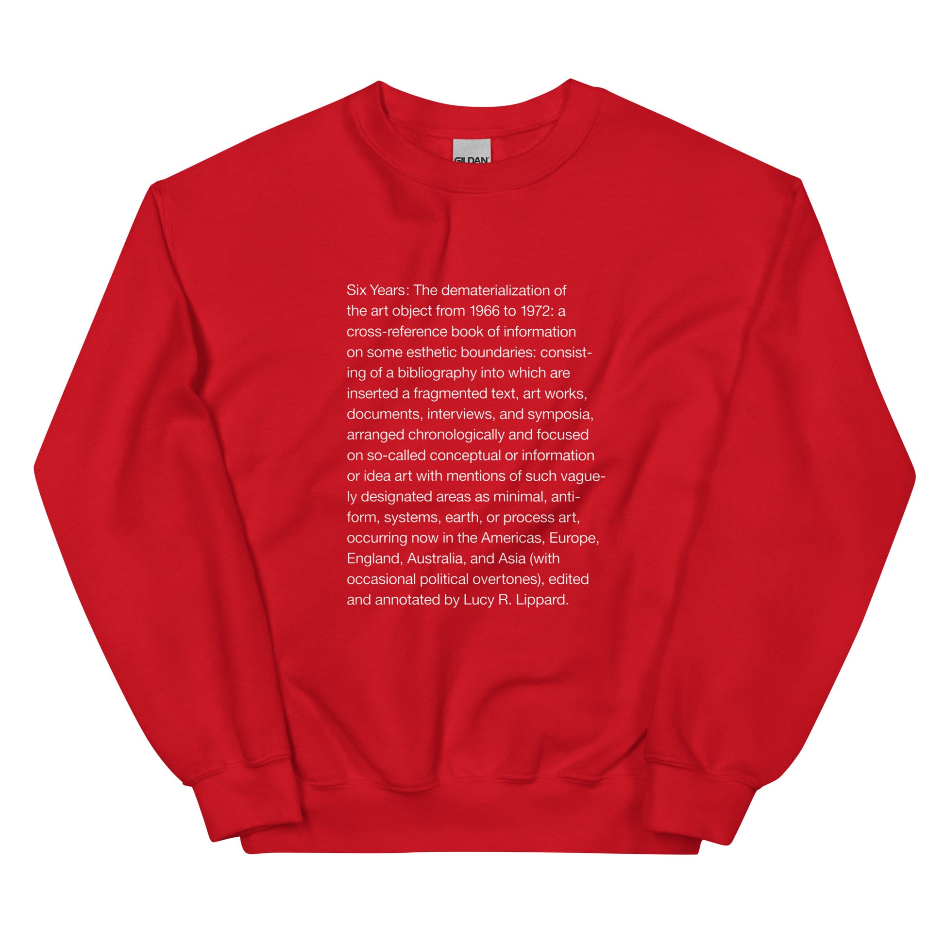 In 1973 the critic and curator Lucy R. Lippard published Six Years, a book with possibly the longest subtitle in the bibliography of art: The dematerialization of the art object from 1966 to 1972: a cross-reference book of information on some esthetic boundaries: consisting of a bibliography into which are inserted a fragmented text, art works, documents, interviews, and symposia, arranged chronologically and focused on so-called conceptual or information or idea art with mentions of such vaguely designated areas as minimal, anti-form, systems, earth, or process art, occurring now in the Americas, Europe, England, Australia, and Asia (with occasional political overtones) edited and annotated by Lucy R. Lippard. Six Years, sometimes referred to as a conceptual art object itself, not only described and embodied the new type of art-making that Lippard was intent on identifying and cataloging, it also exemplified a new way of criticizing and curating art.