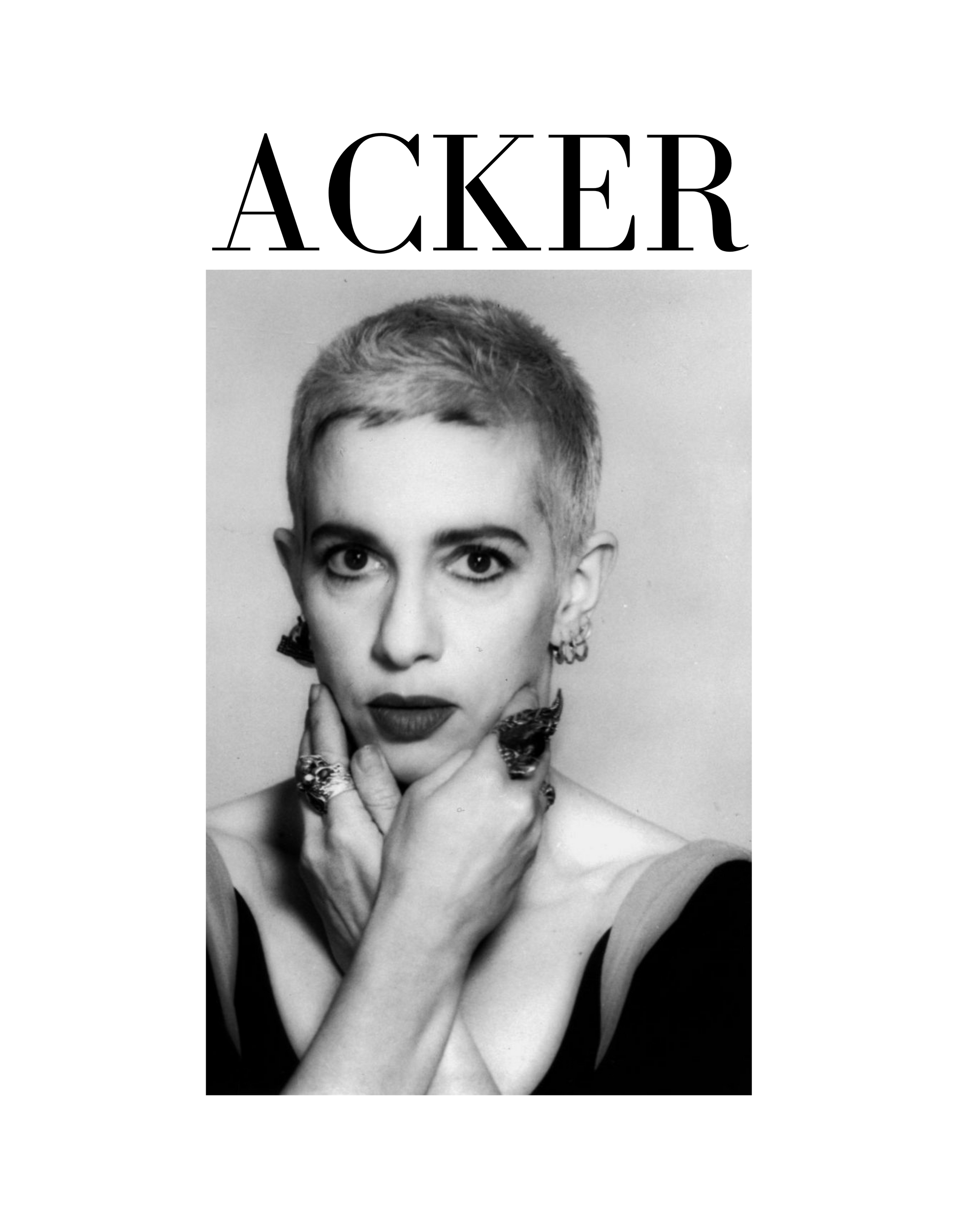 Kathy Acker’s impact as a writer and performer, a cultural figure, and an ­(often overlooked) academic is uniquely ­tangled: the innovations of her hybrid, transgressive literature, written between 1972 and 1996, ­baffled her contemporaries to a degree that, once they had cracked the code, it was easily written off as yesterday’s avant-garde. And yet her work, and her flamboyant punk persona, proved to be disruptive at a time when disruption didn’t signal an anti-truth nihilism but a quest to subvert consciousness and challenge the rigidity of meaning, as she herself once put it. Her use of collage and appropriation raised questions that echo through today’s cultural landscape with striking urgency.