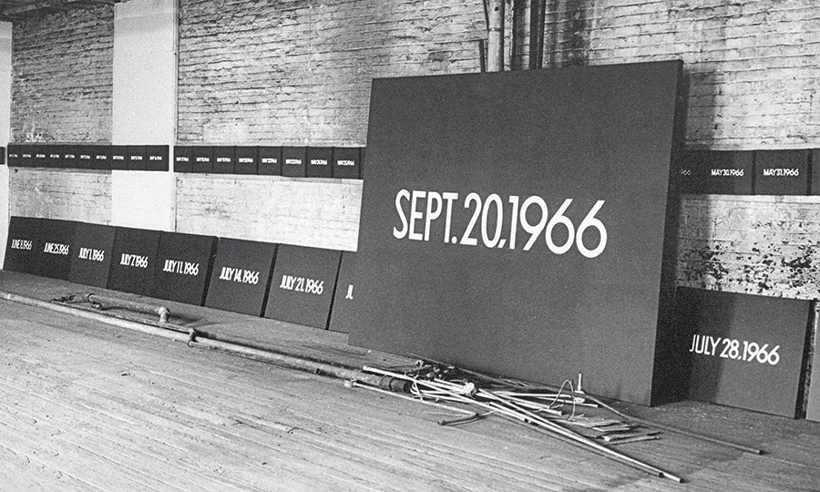 Kawara's long series of "date paintings" (the Today series) consist entirely of the date on which the painting was executed in simple white lettering set against a solid background. The date is always documented in the language and grammatical conventions of the country in which the painting was executed.