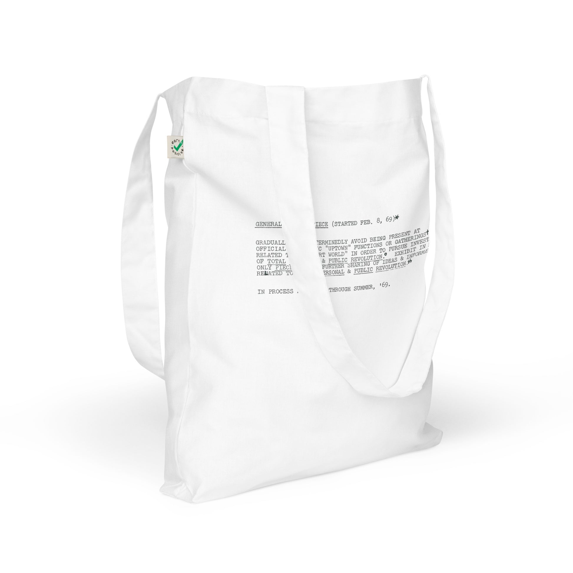 GRADUALLY BUT DETERMINEDLY AVOID BEING PRESENT AT OFFICIAL OR PUBLIC "UPTOWN" FUNCTIONS OR GATHERINGS RELATED TO THE "ART WORLD" IN ORDER TO PURSUE INVESTIGATIONS OF TOTAL PERSONAL AND PUBLIC REVOLUTION. EXHIBIT IN PUBLIC ONLY PIECES WHICH FURTHER SHARING OF IDEAS & INFORMATION RELATED TO TOTAL PERSONAL AND PUBLIC REVOLUTION.
